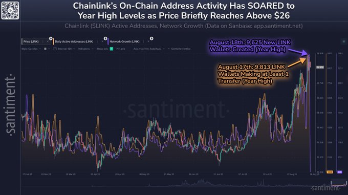 At the same time, over 9,600 new wallets have been created within just two days, marking record network expansion and reflecting increased adoption and awareness. This influx not only broadens Chainlink’s base of active users but also signals growing ecosystem maturity, a critical catalyst in reinforcing long-term price dynamics through network effects.
