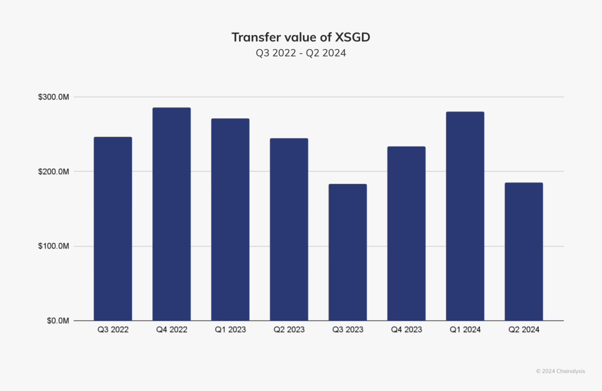 Singapore is taking a measured yet forward-looking approach to digital currency innovation. Through Project Orchid, it is exploring retail-focused CBDC use cases, including 2024 pilots of Purpose-Bound Money (PBM) with firms like Grab, enabling tokenized retail vouchers and programmable payments. In the stablecoin space, XSGD, launched by StraitsX in 2020, stands out for being fully backed 1:1 by reserves held with DBS Bank and Standard Chartered. StraitsX is licensed by the Monetary Authority of Singapore (MAS) as a Major Payment Institution, giving XSGD regulatory legitimacy and multi-chain deployment capabilities. Since Q3 2022, XSGD has consistently recorded quarterly transfer volumes exceeding $200 million, highlighting strong market confidence.