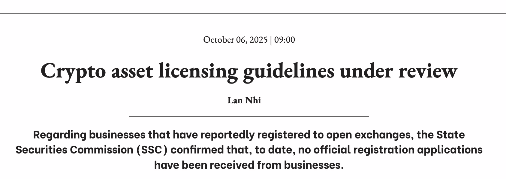 The SSC’s ongoing review marks a key milestone for Vietnam’s emerging crypto ecosystem, potentially paving the way for the country’s first legally recognized digital asset exchanges before 2026.