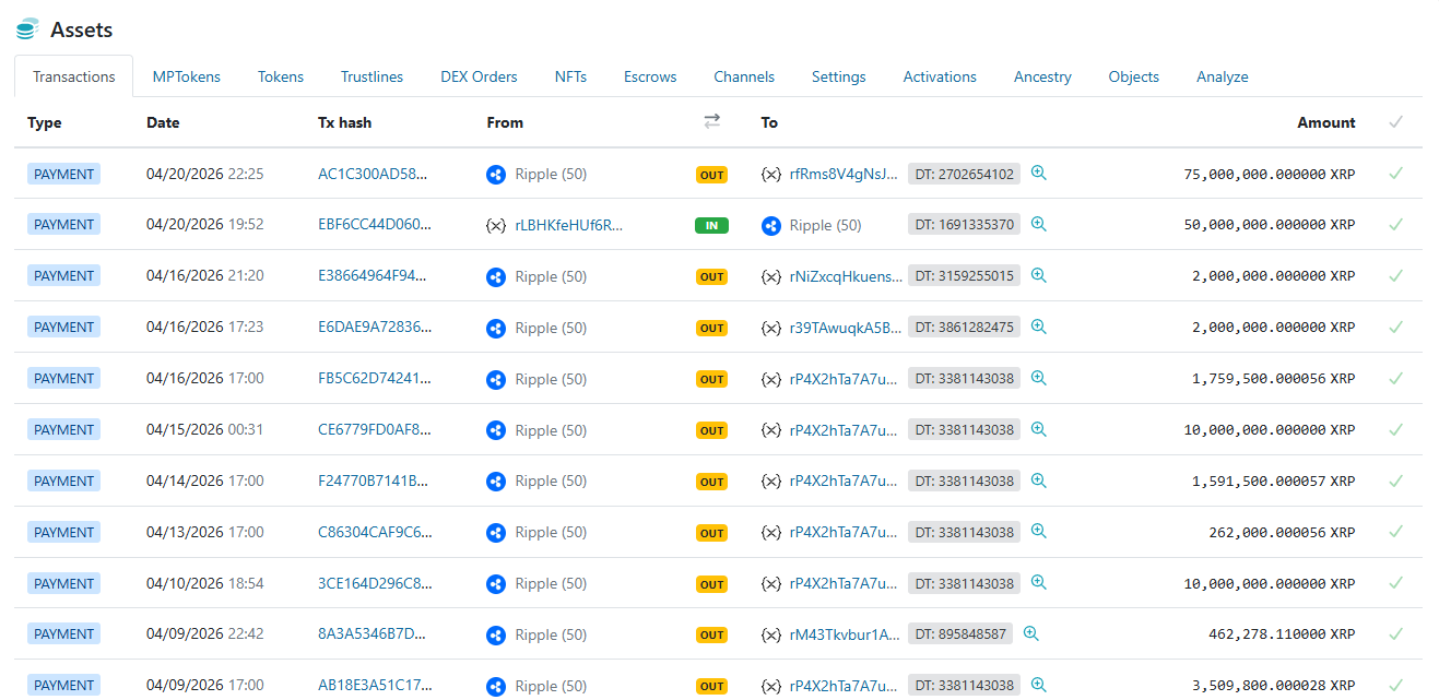 Ripple moved 75 million XRP across several wallets on April 20, then sent 50 million XRP to Coinbase-linked addresses, as XRP attempted a mild rebound in the market. The transaction, worth about $107.25 million, has triggered a new debate over whether Ripple is simply reorganizing its holdings or preparing for more exchange activity.